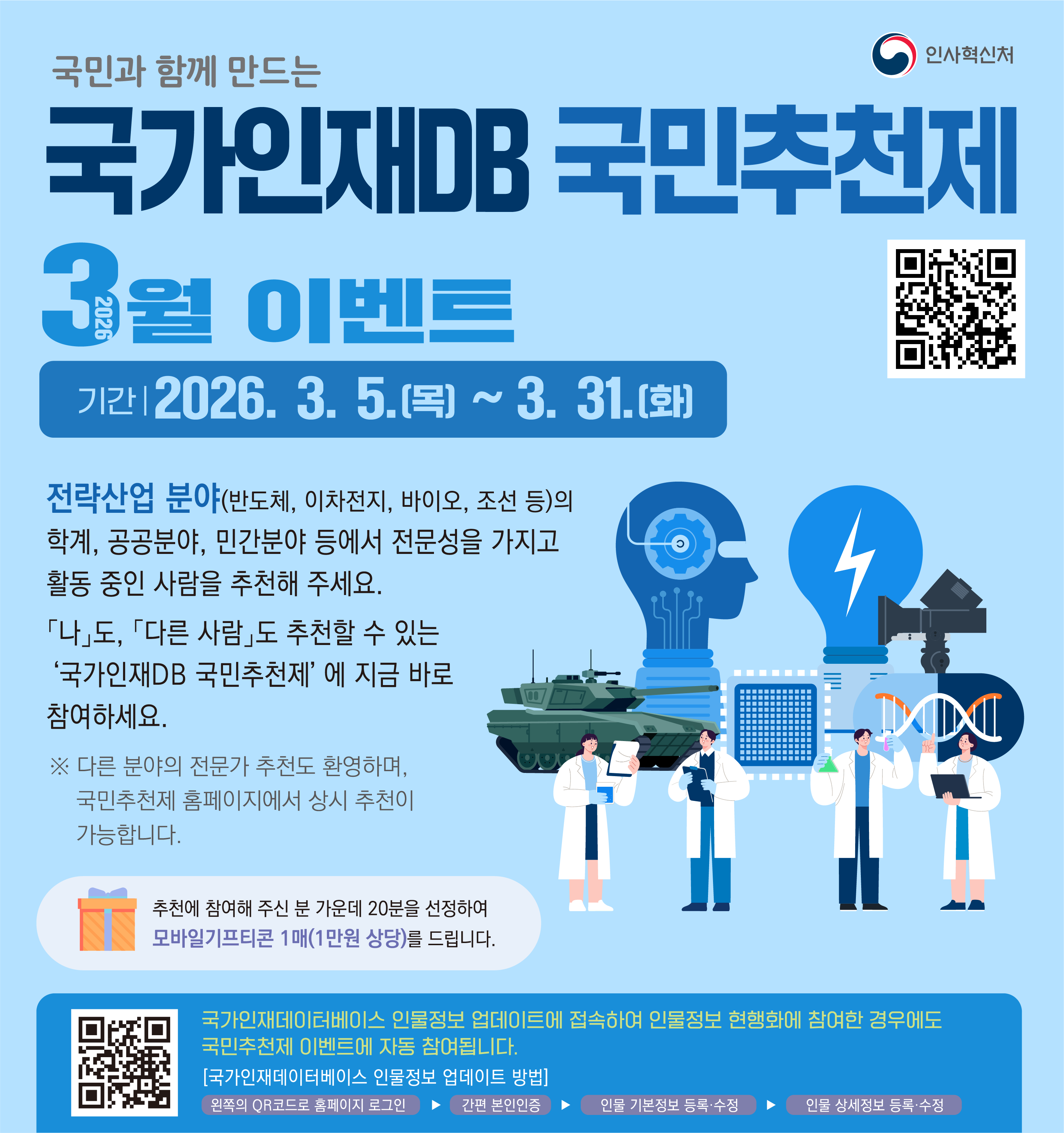 < 2026년 3월 국가인재DB 국민추천제 이벤트 안내 >