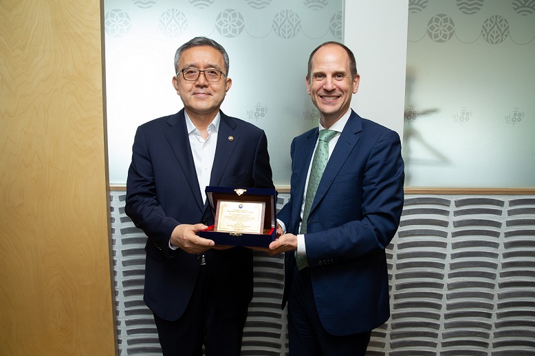 On July 20, 2018, Minister Kim Pan Suk presented a Plaque of Appreciation to the Canadian Ambassor to Korea Mr. Eric Walsh in appreciation for his service to strengthening the relationship between Korea and Canada in the areas of public personnel management and human resource development. During Ambassador Walsh's tenure in Korea, MPM organized a group of 10 Director-level public officials from Korea to Ottawa, Canada for a week-long training program. The program was hosted by the Canada Privy Council Office and included visits to key organizations* of the Government of Canada where Korean officials could learn about the Canadian public HRM system.
