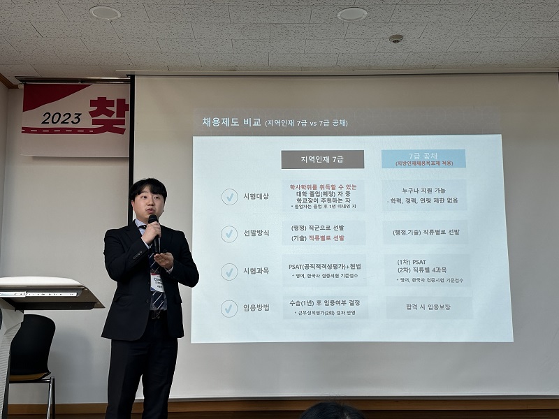 2023.11.1일 광주여자대학교에서 2023 찾아가는 공직박람회 행사를 진행하고 있습니다.