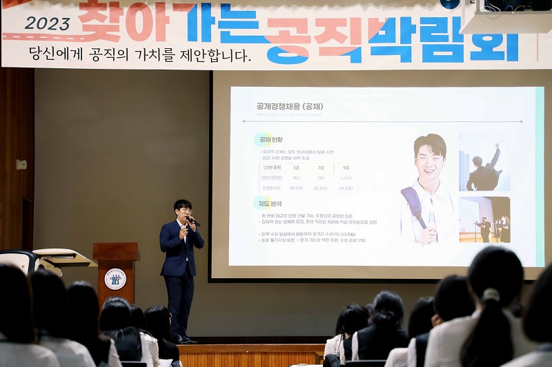 2023.9.26일 대성여자고등학교에서 2023 찾아가는 공직박람회 행사를 진행하고 있습니다.