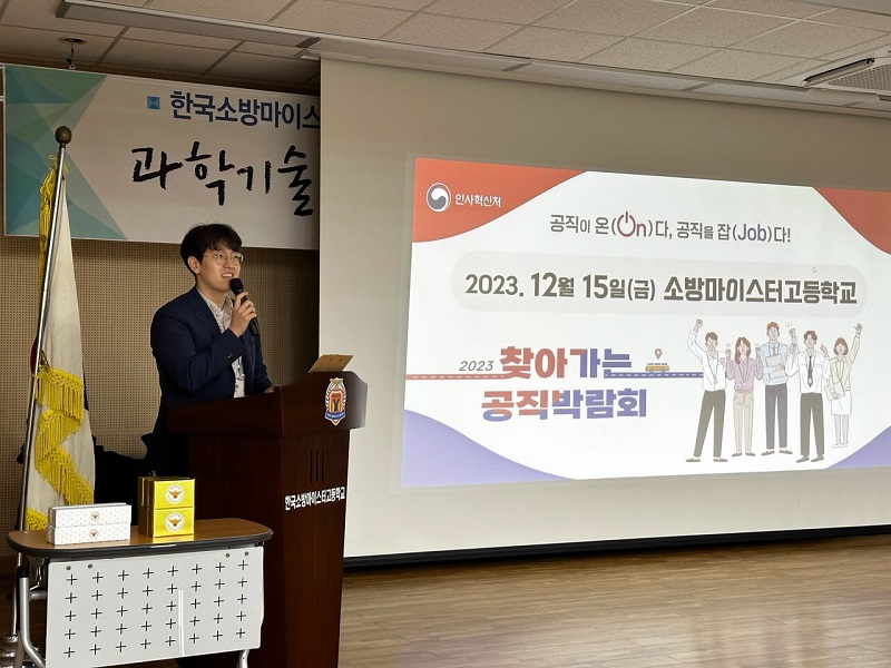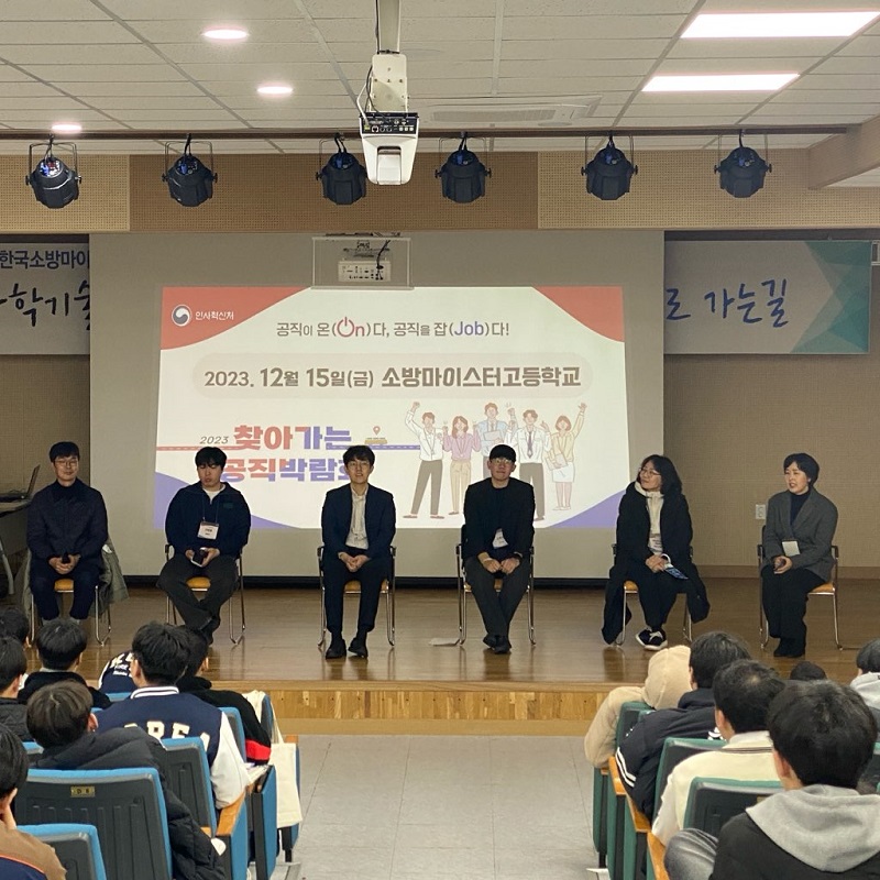 2023.12.15일 소방마이스터고등학교에서 2023 찾아가는 공직박람회 행사를 진행하고 있습니다.