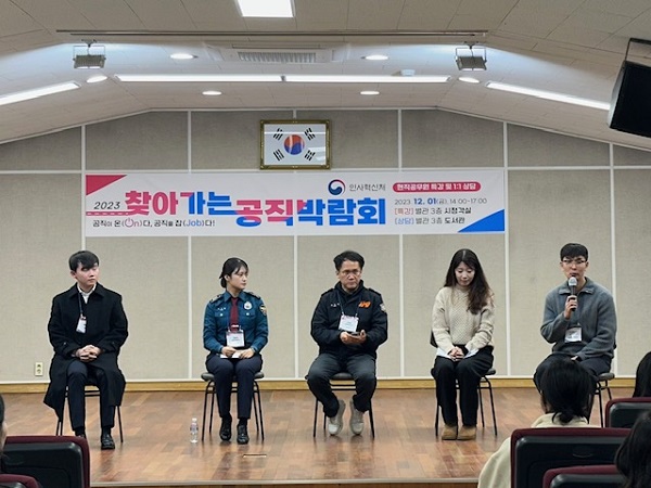 2023.12.1일 일신여자상업고등학교에서 2023 찾아가는 공직박람회 행사를 진행하고 있습니다.