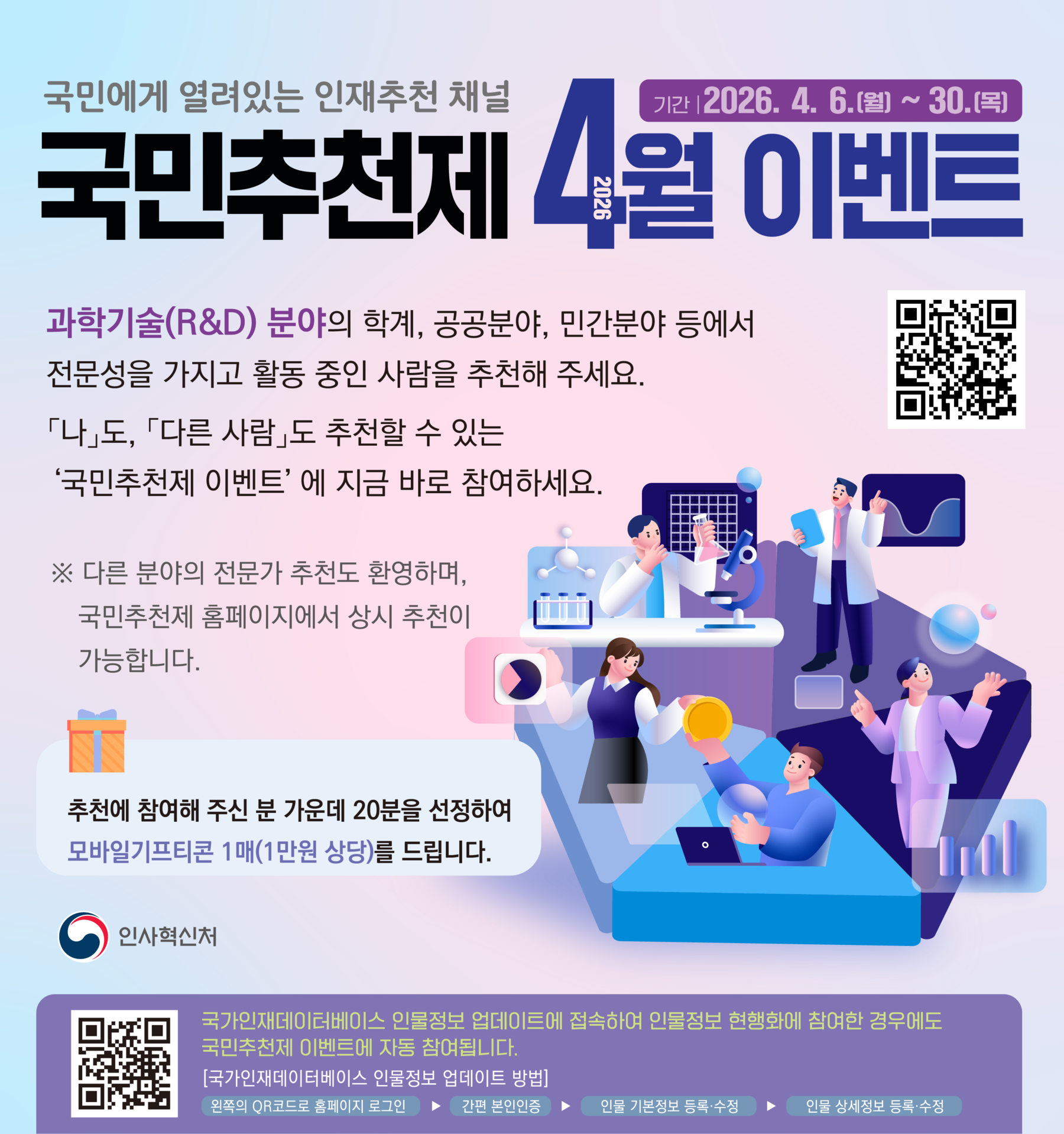 < 2026년 4월 국가인재DB 국민추천제 이벤트 안내 >