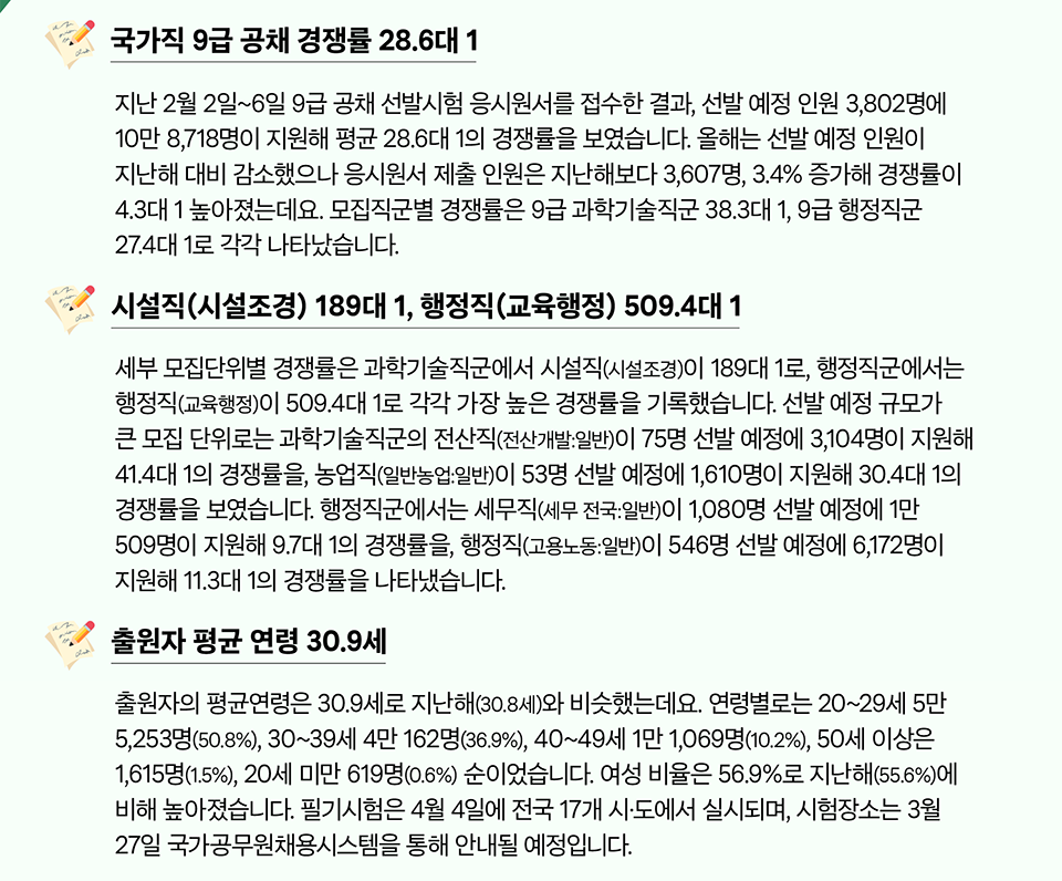 2026년 국가공무원 9급 공채 경쟁률이 28.6대 1로 나왔어요!