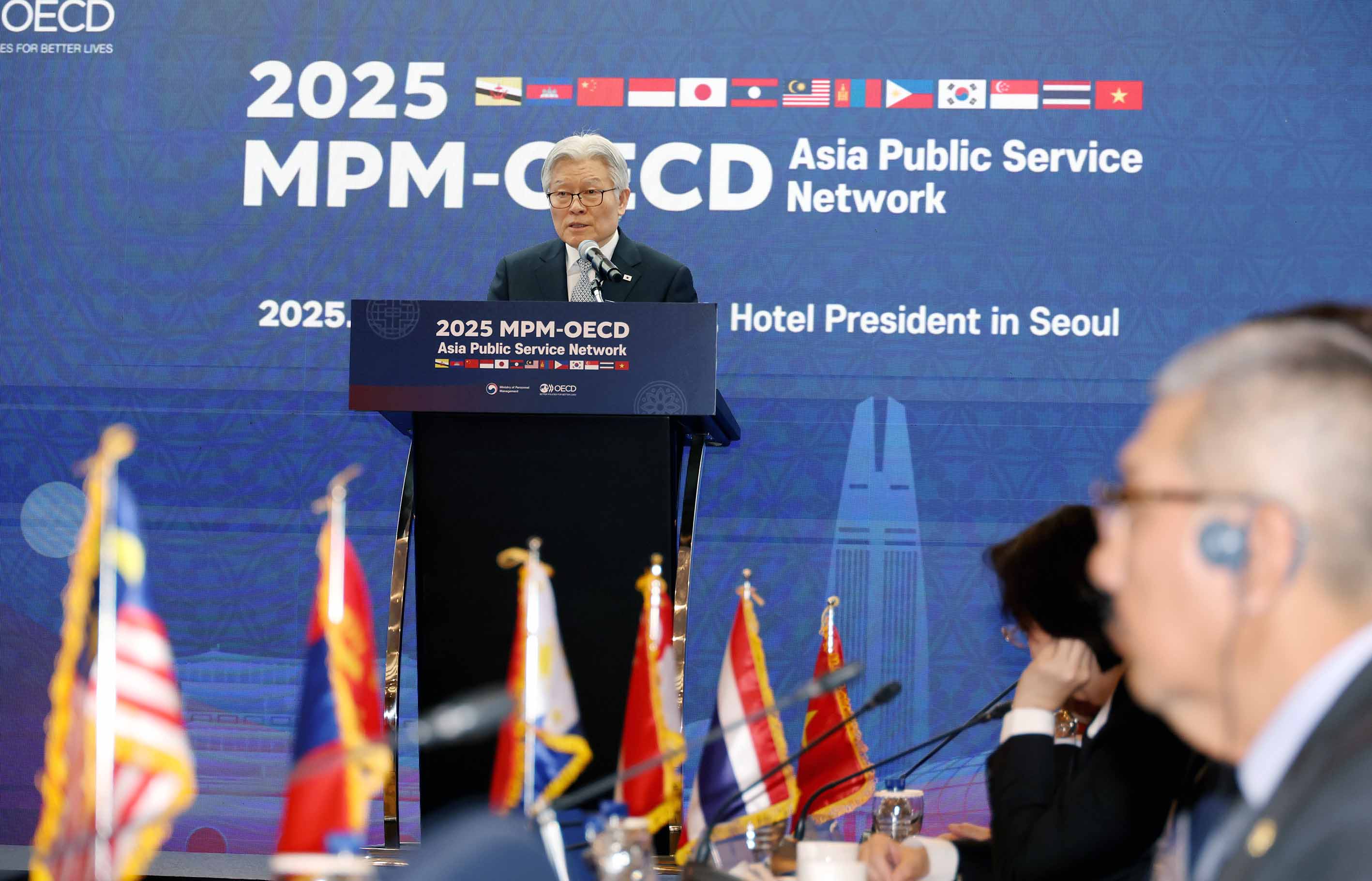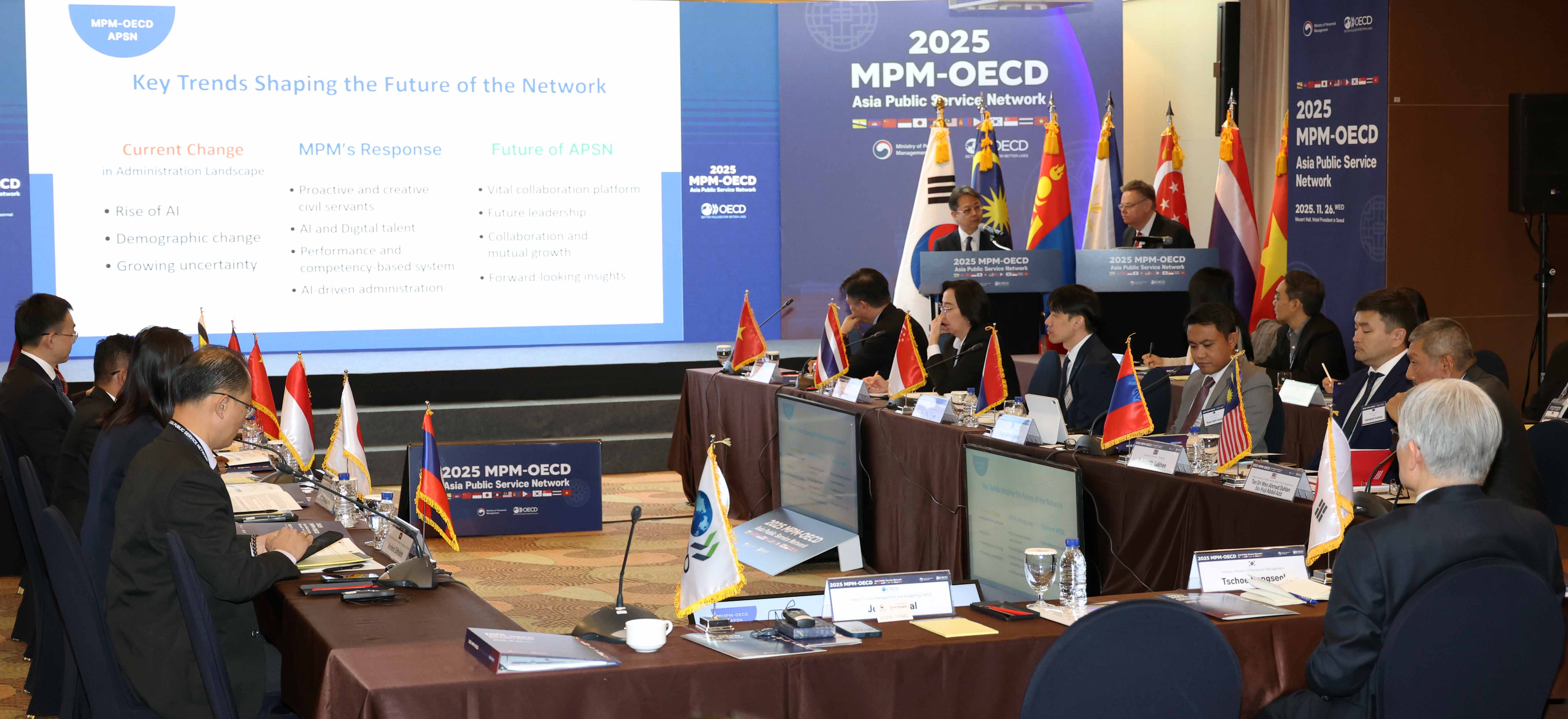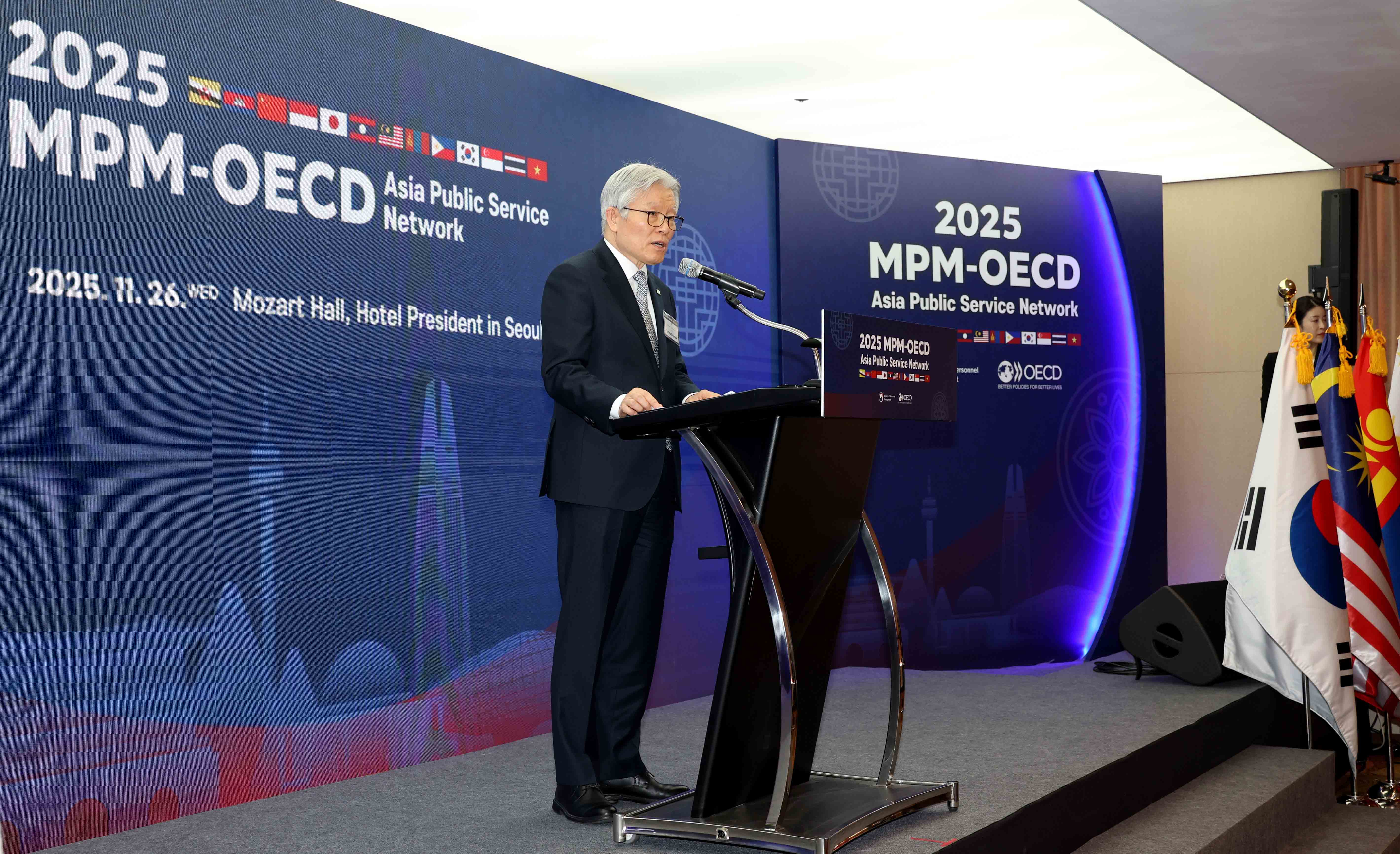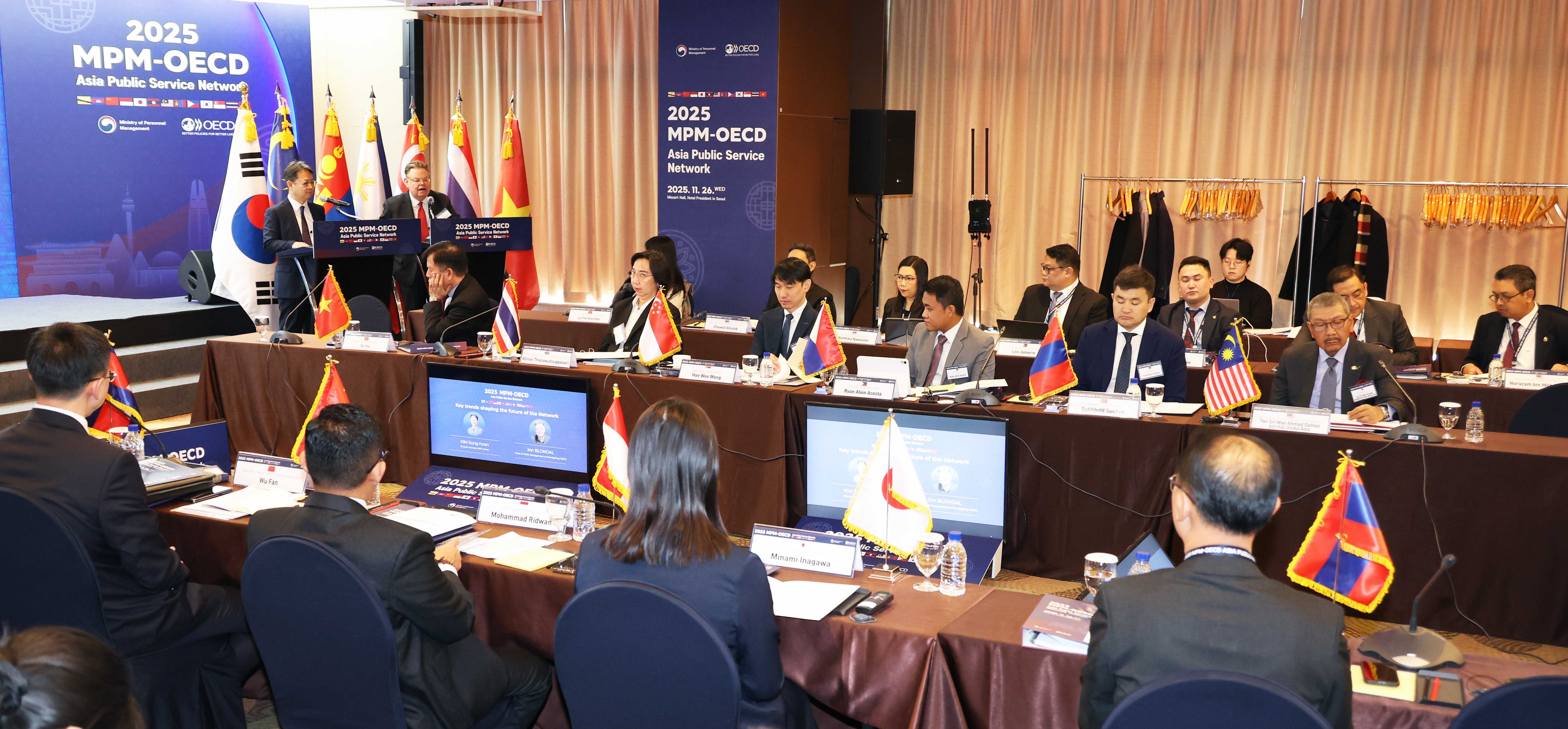 최동석 인사혁신처장이 11월26일 서울 중구 프레지던트 호텔에서 열린 '2025 인사혁신처-OECD 아시아 인사행정 네트워크 컨퍼런스'에서 각국 참석자들과 함께 기념촬영을 하고 있다.