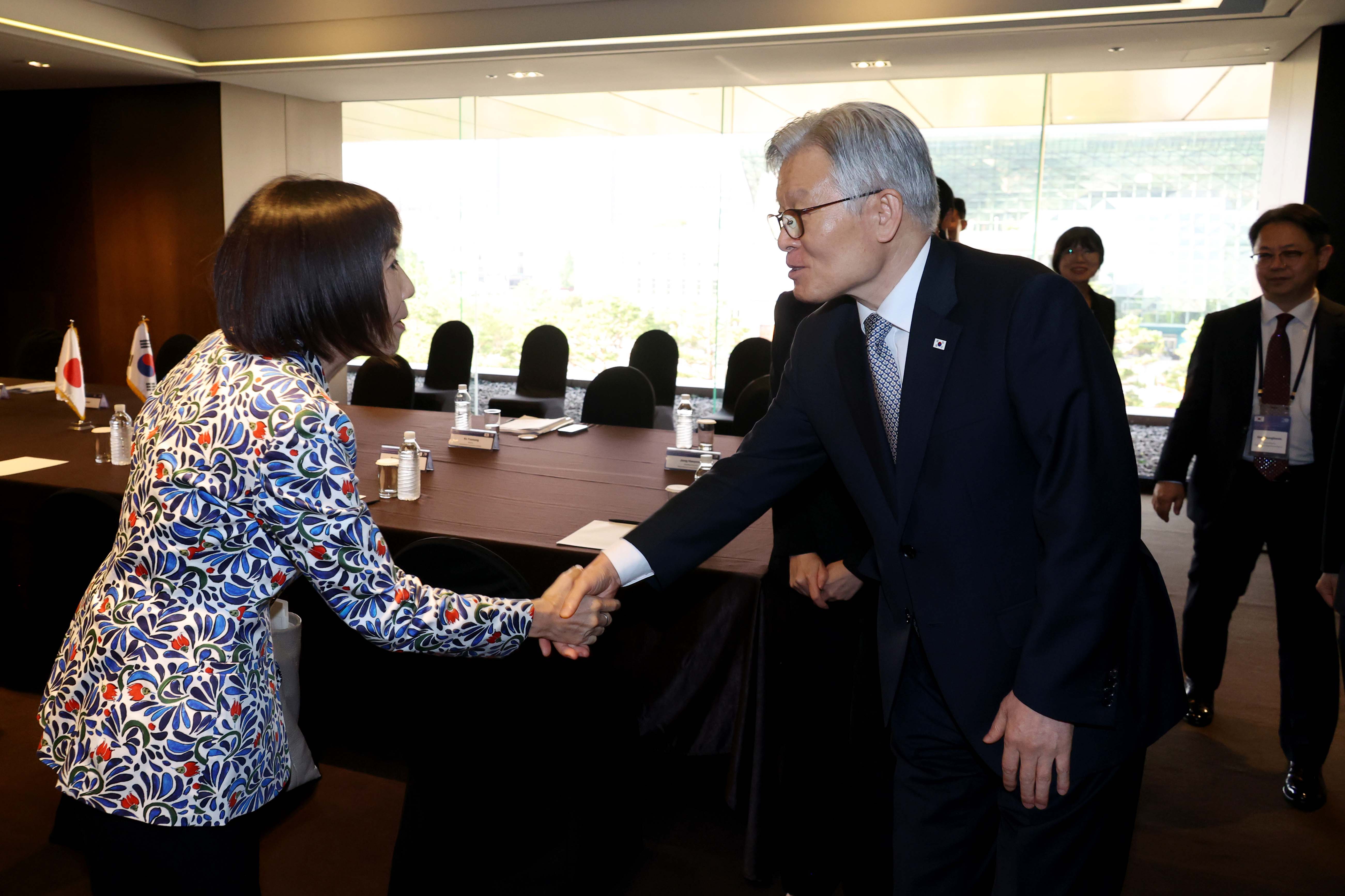 최동석 인사혁신처장이 9월29일 서울 중구 플라자호텔에서 카와모토 유코 일본 인사원 총재를 만나 인사행정 분야의 양국 협력방안에 대해 논의하고 있다.