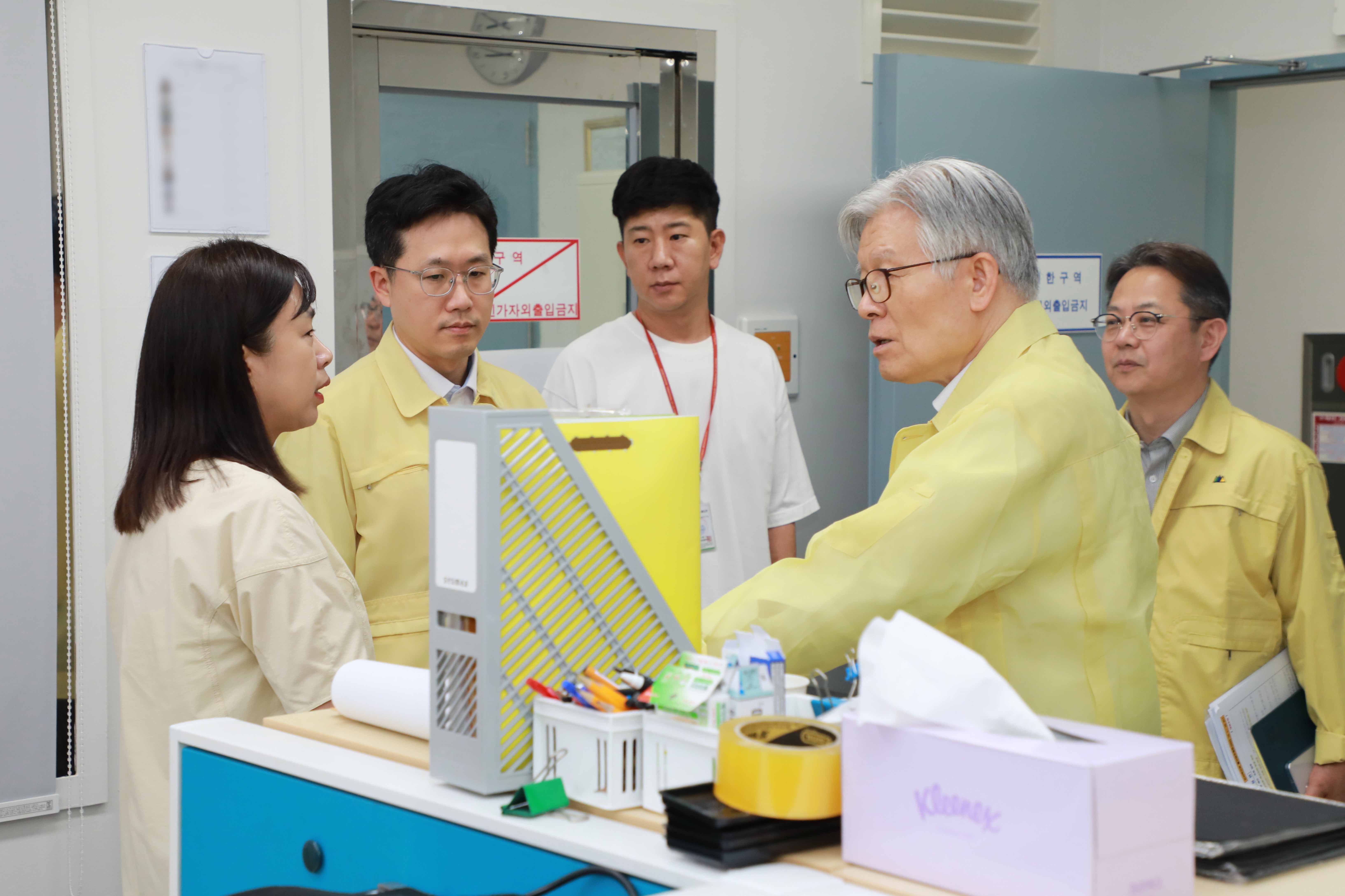 최동석 인사혁신처장이 10월2일 추석 명절을 앞두고 인사처 유지보수실과 서버실을 방문해 전산 장비 시설을 점검하고 현황을 보고 받고 있다.