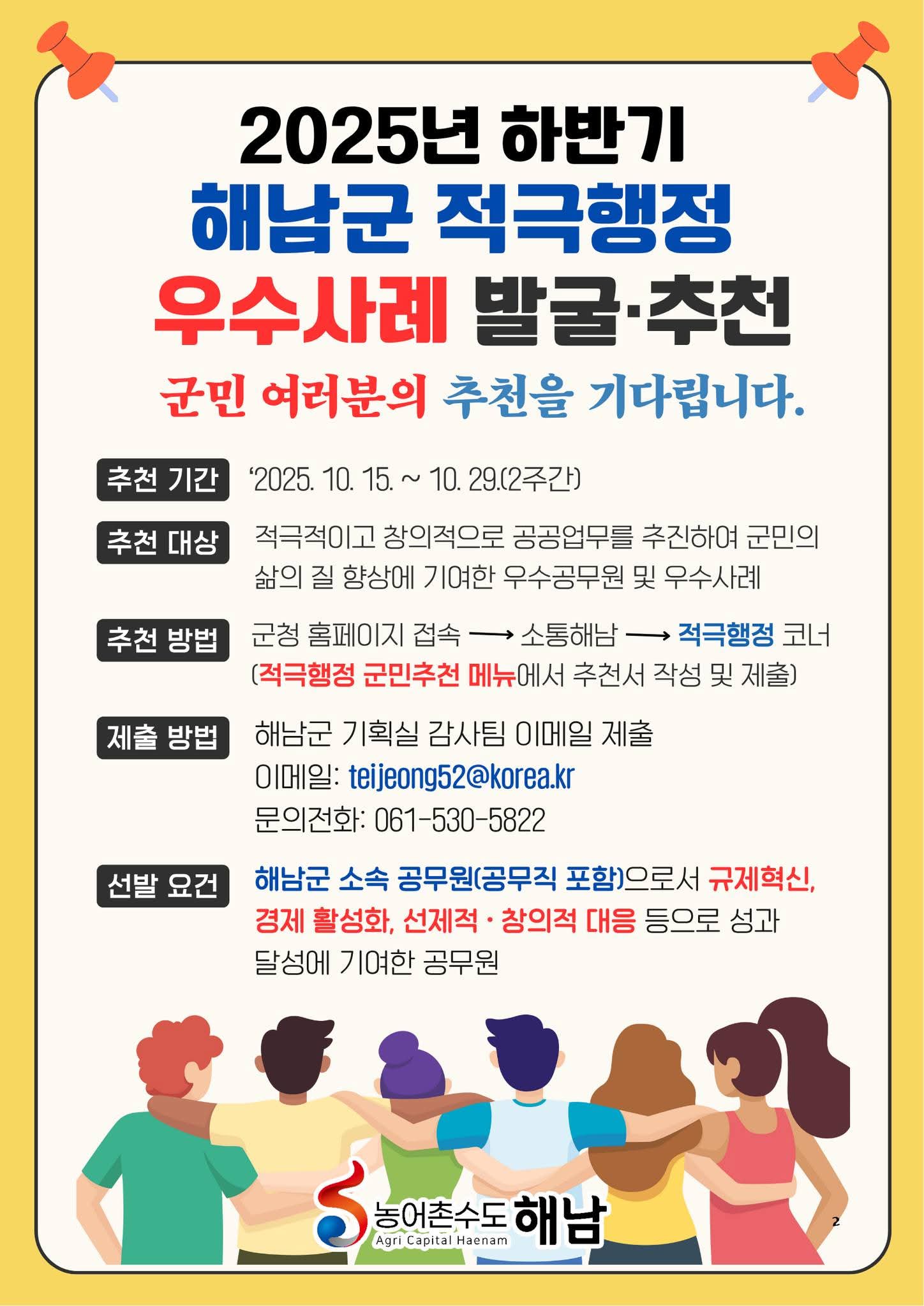 (전라남도 해남군)2025년 하반기 해남군 적극행정 우수사례(우수공무원) 국민추천 안내
