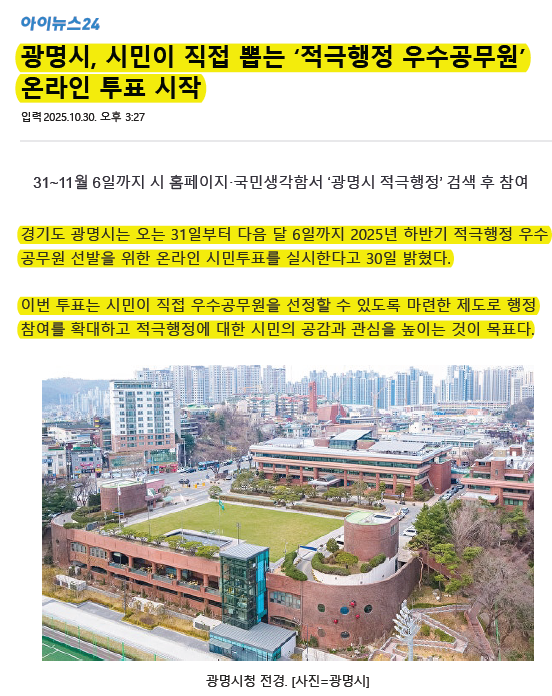 (경기도 광명시) (보도자료) '하반기 적극행정 우수공무원' 시민 투표로 뽑아주세요!