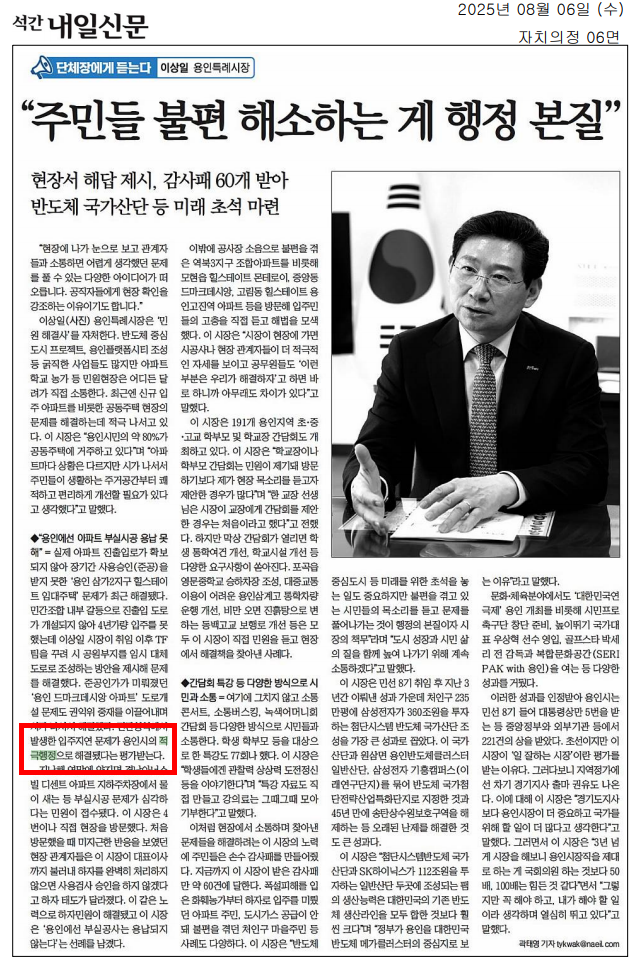 [용인특례시] 주민들 불편 해소하는 게 행정 본질