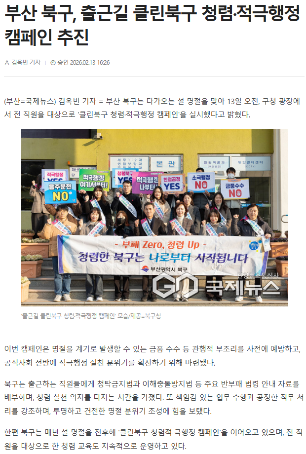 [부산광역시 북구] 청렴·적극행정 실천 캠페인 실시 언론보도